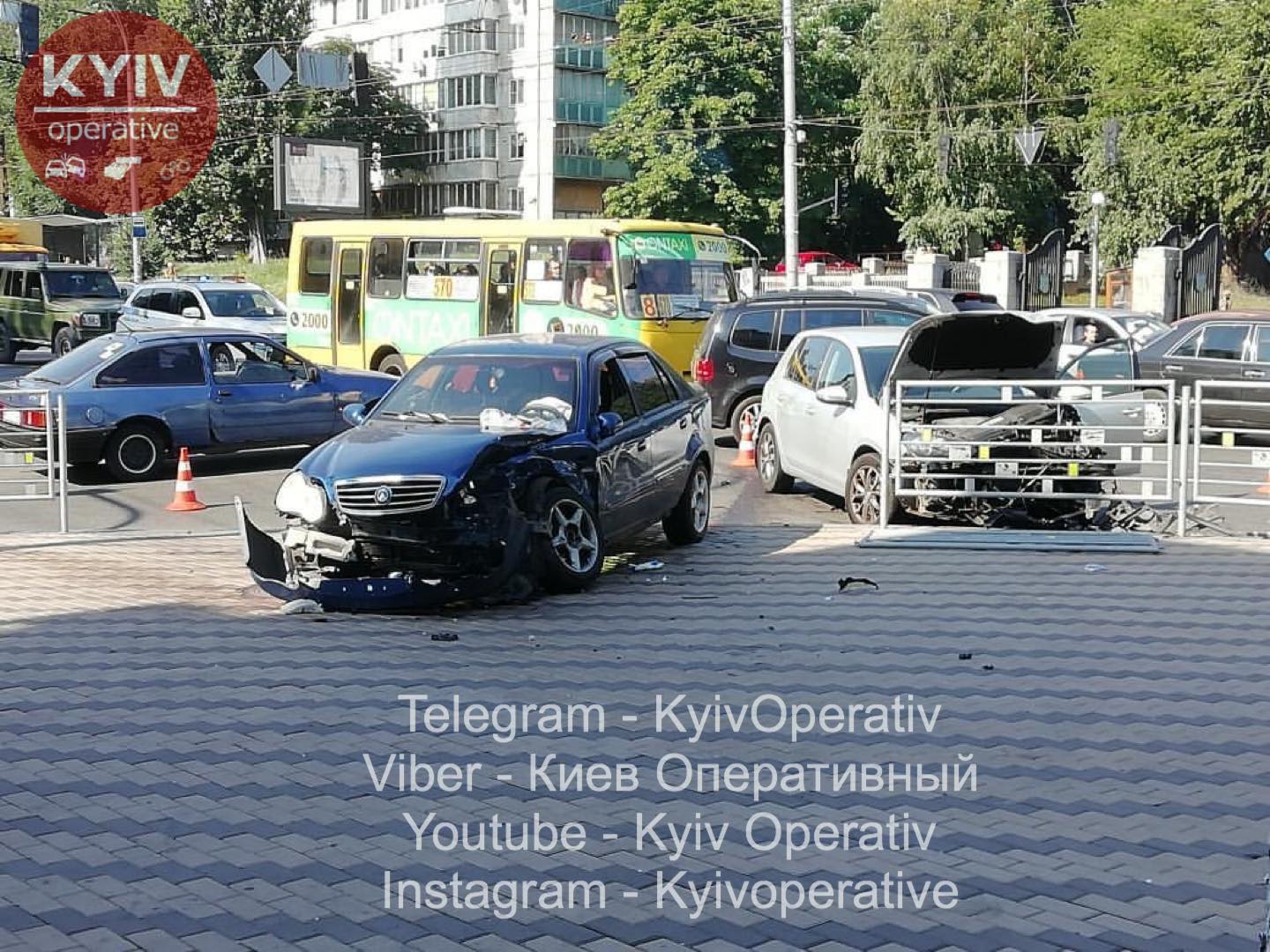 Авария с участием автомобилей Geely и Volkswagen произошла на перекрестке возле Министерства обороны Украины на Воздухофлотском проспекте, 6.