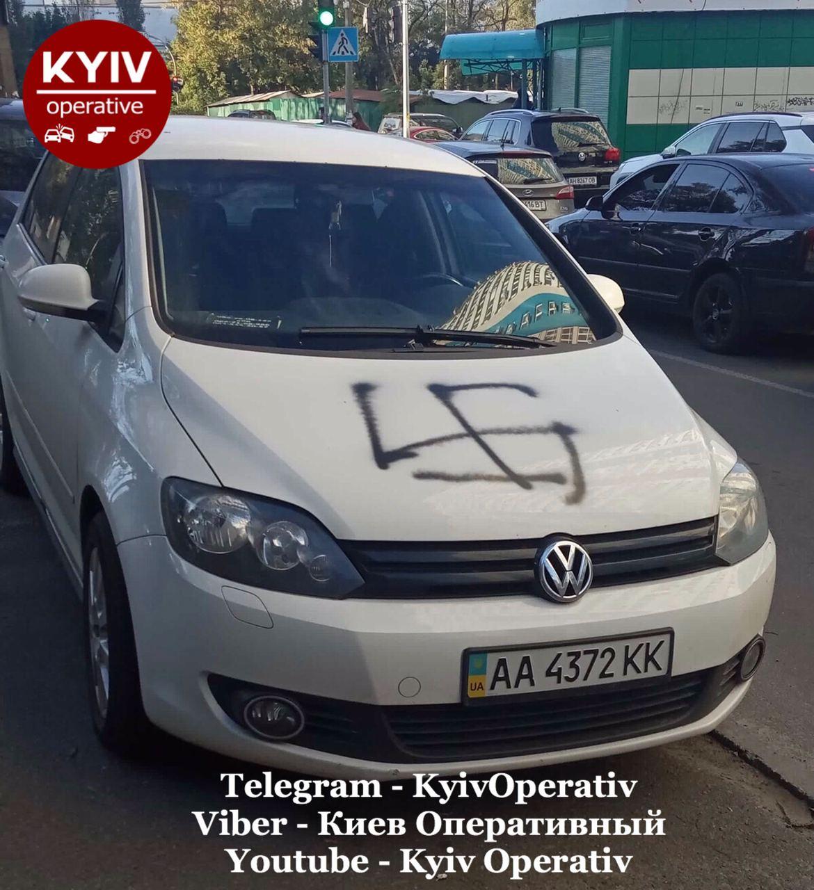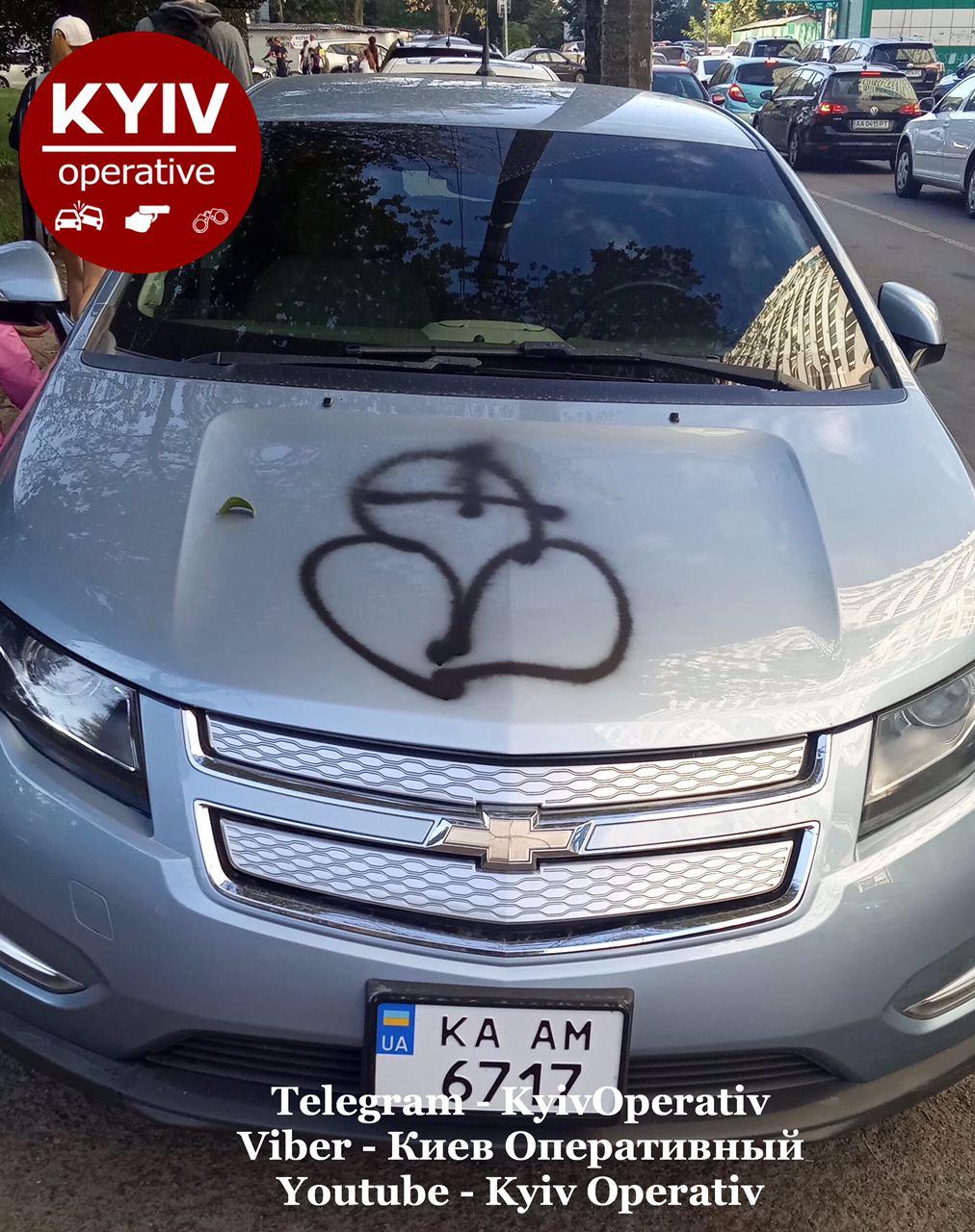 Так, на улице Сикорского неизвестные оставили рисунки краской из баллончика на капоте автомобилей, стоявших на тротуаре.
