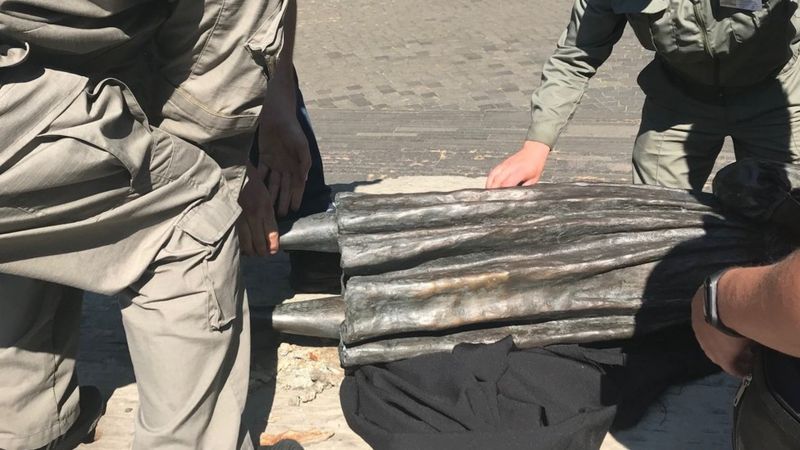 "Они отвлекали охрану под видом пьяных, - рассказывает Стасюк. - Скульптуру очень трудно было сорвать, там нужен был автомобиль, поэтому это точно не пьяные сделали".