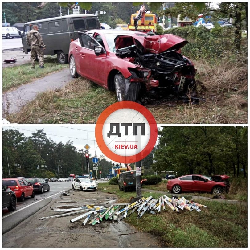 Нетрезвый водитель был за рулем Mazda. Известно, что он несся на большой скорости и врезался в опору рекламной конструкции.