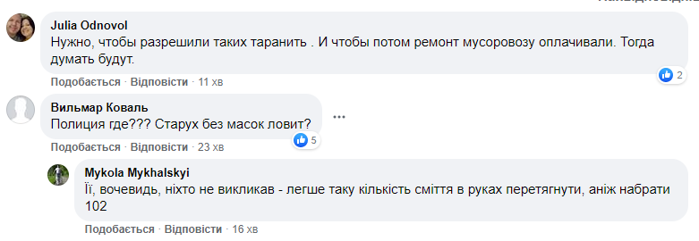 "Нужно, чтобы разрешили таких таранить. И чтобы потом ремонт мусоровоза оплачивали", - написала пользователь Юлия Одновол.