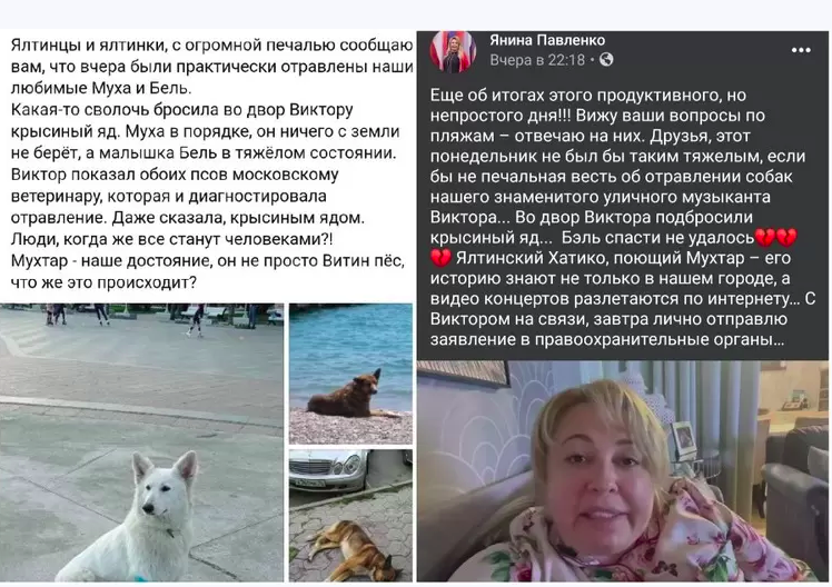 Несколько дней назад во двор, где живут трубач с Мухтаром и подругой пса по кличке Бэль, подсыпали крысиный яд. Бэль в результате умерла. Мухтару удалось выжить, но он находится в тяжелом состоянии.