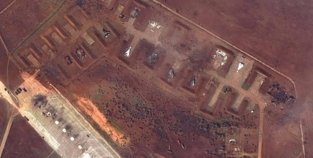 Информацию об уничтожении российского пункта управления в Саках также обнародовал военный корреспондент Андрей Цаплиенко. Он отдельно опубликовал спутниковый снимок пораженного аэродрома, на котором можно увидеть уничтоженные вражеские бомбардировщики.