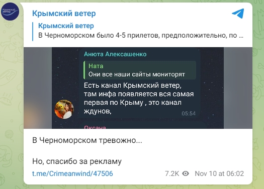 В ночь на 10 ноября в оккупированном Крыму раздавались мощные взрывы. Сообщается о "прилете" в казарму в погранзаставе россиян в Черноморском и возможном поражении двух патрульных катеров ФСБ.