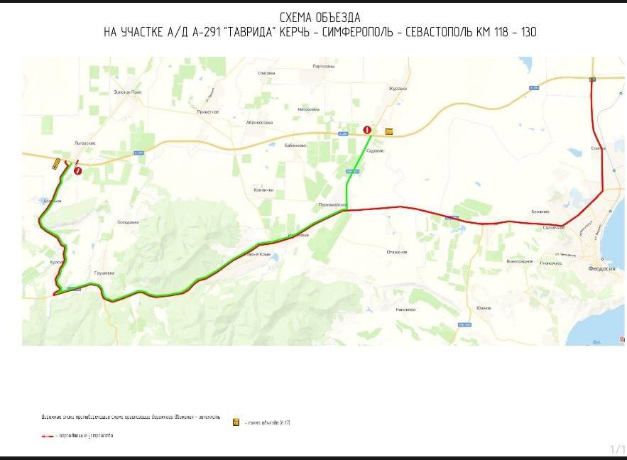 Сообщается, что трасса "Таврида" перекрыта со 118 по 130 км. Транспорт перенаправляется через населенные пункты Старый Крым и Первомайское.