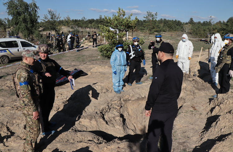 Эксгумация тел в Лимане продолжается в рамках уголовного производства, открытого по ст. 438 о нарушении законов и обычаев войны Уголовного кодекса Украины.