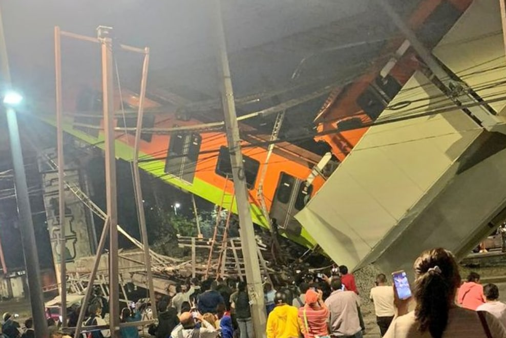 Ночью 3 мая в Мексике после обрушения моста упал вагон метро, травмы получили 70 человек.