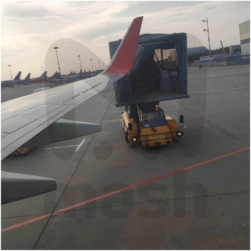 Пассажирам, которые находились в салоне, не разрешили выйти из самолета. На место прибыли спасатели и пожарная машина.