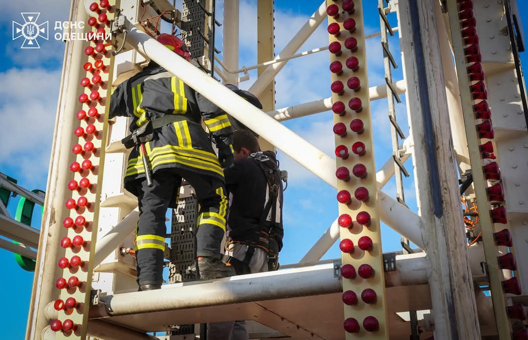 "Спасатели, совместно с сотрудниками парка аттракционов, сняли с высоты 18 метров 4 ребенка. Пожарные, используя страхование с помощью веревки, спустили детей по аварийной лестнице. С детьми работали психологи ГСЧС", - сообщили одесские спасатели.