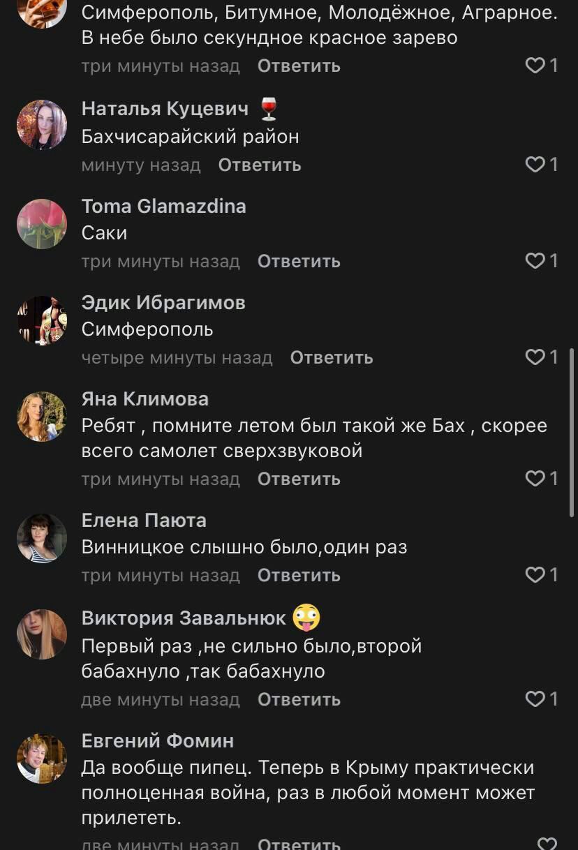 Между тем, в комментариях пророссийских пабликов Крыма россияне пишут, что "теперь в Крыму практически полноценная война, раз в любой момент может прилететь".