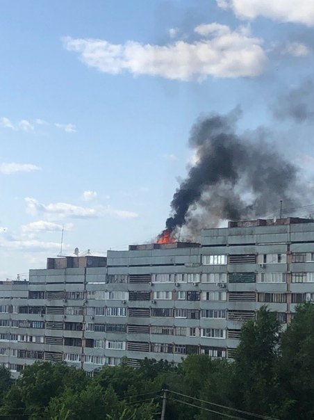 "На улице Коцюбинского (Китайская стена) горит крыша 10-го подъезда, был мощный взрыв, куски металла долетели до памятника Ворошилова (2-3-й подъезд), пожарные прибыли, тушат, но не особо помогает", - сказано в сообщении.