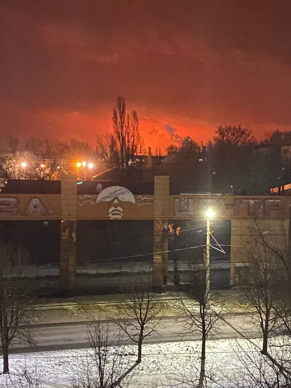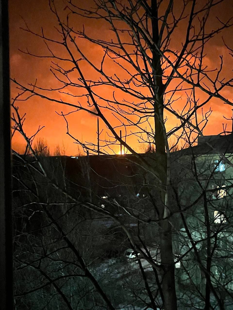 Также подтверждают это фото и видео. На них видно, как что-то горит и огромное зарево, поднимающееся в небо над жилыми домами.