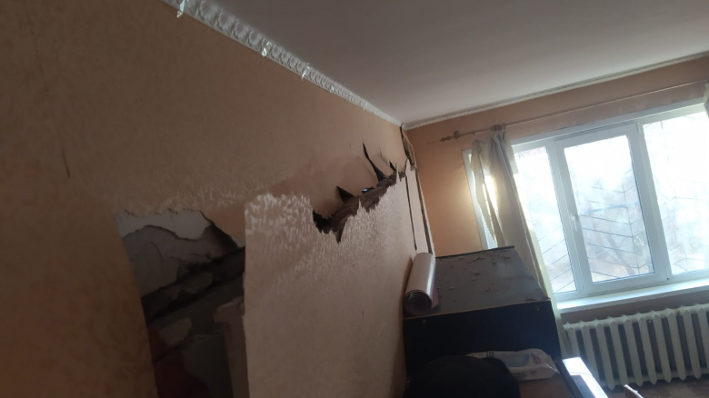 В другой же комнате смежная "стена" получила серьезные повреждения.
