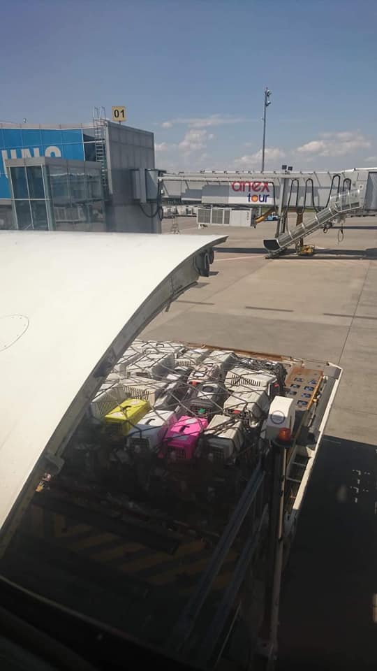 Пользователь Facebook с ником Abby Lorenzen разместила в соцсети фото клеток с собаками в момент их погрузки в самолет в "Борисполе".