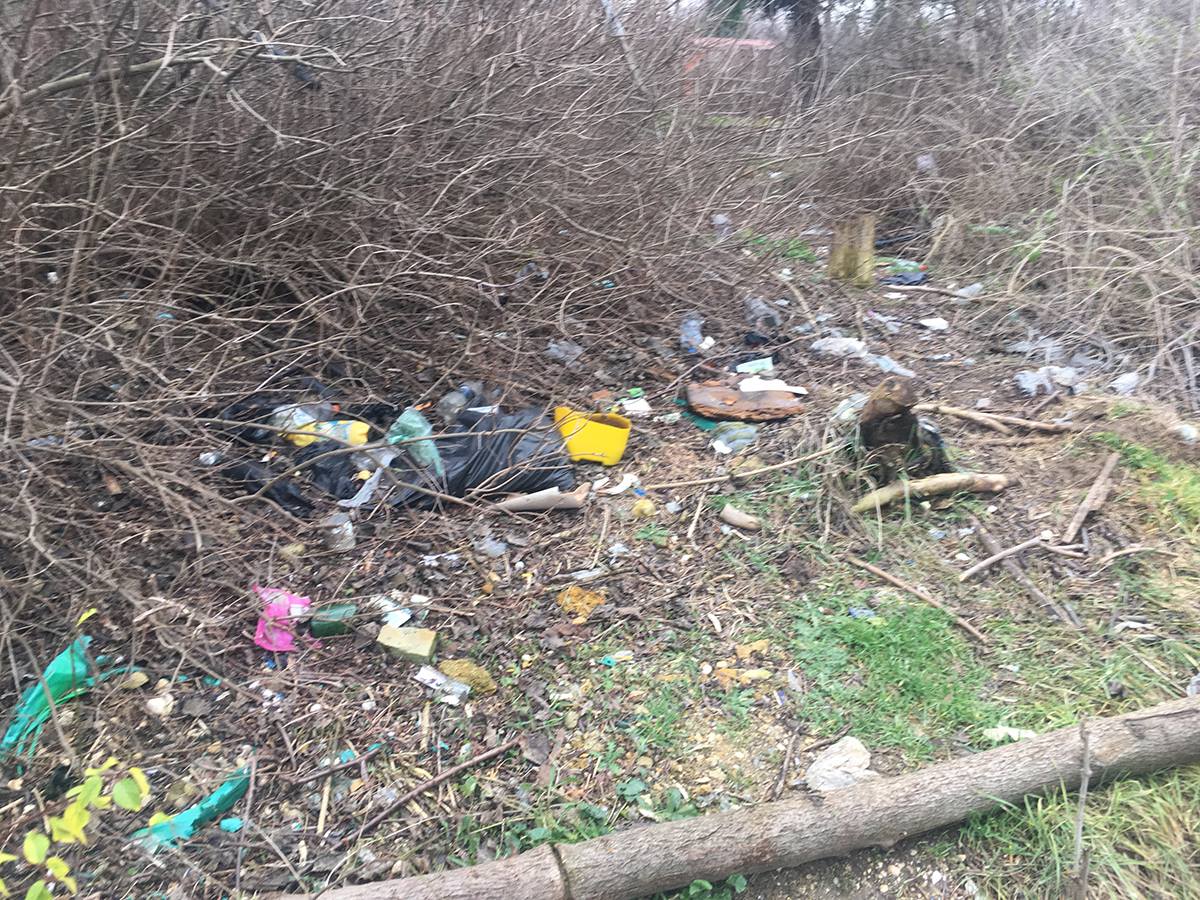 На фото видно, что повсюду валяются бутылки, битый кирпич, использованные пакеты и прочий мусор.