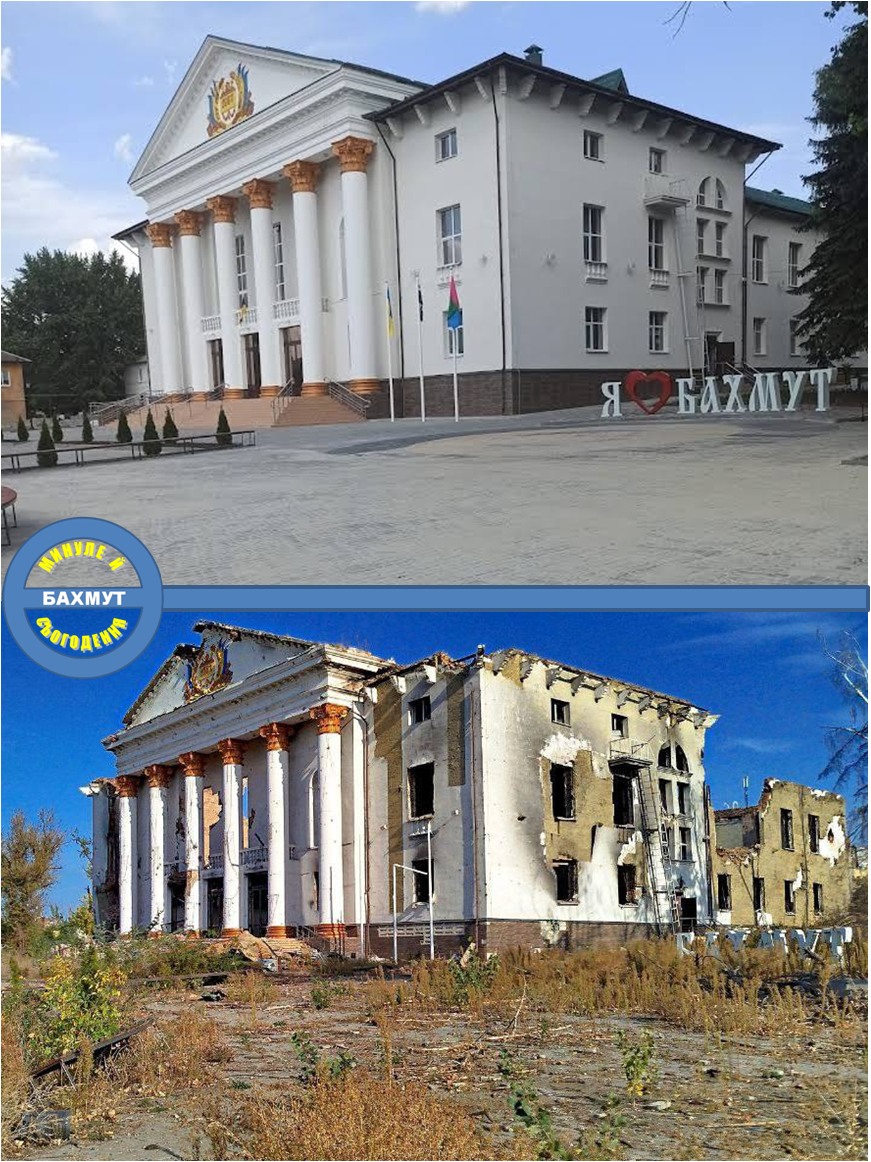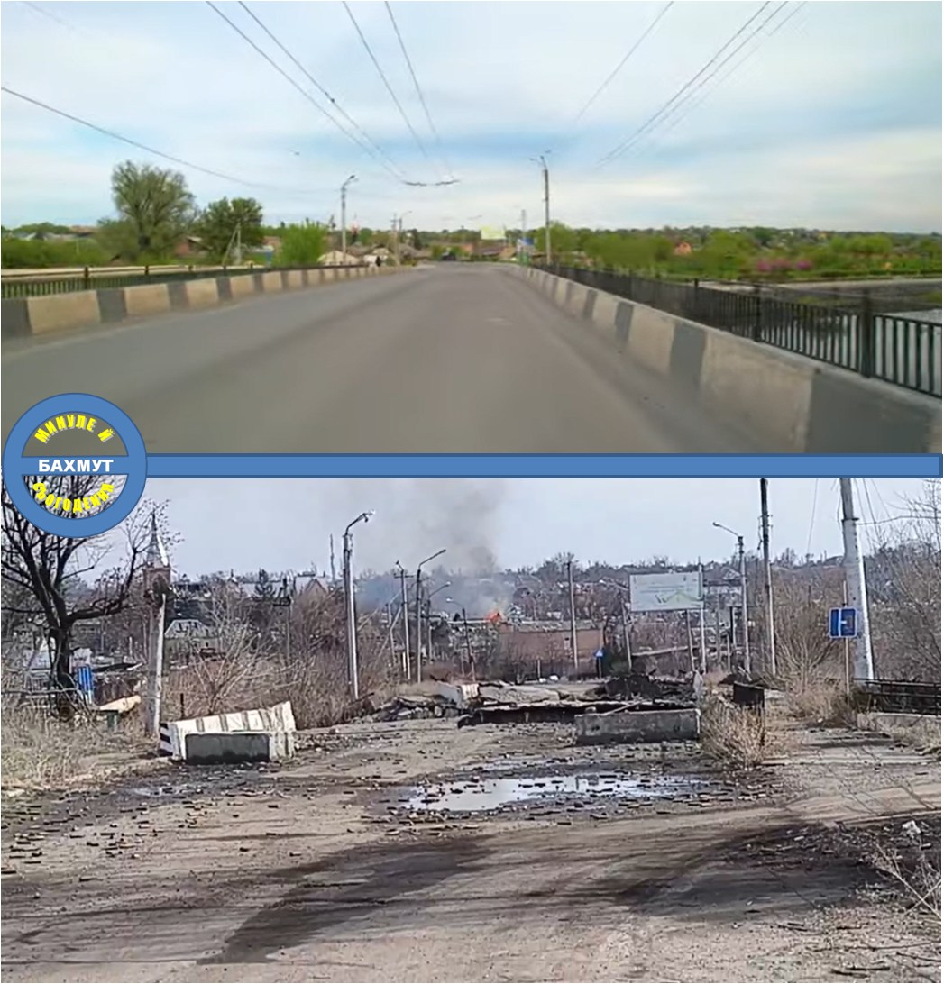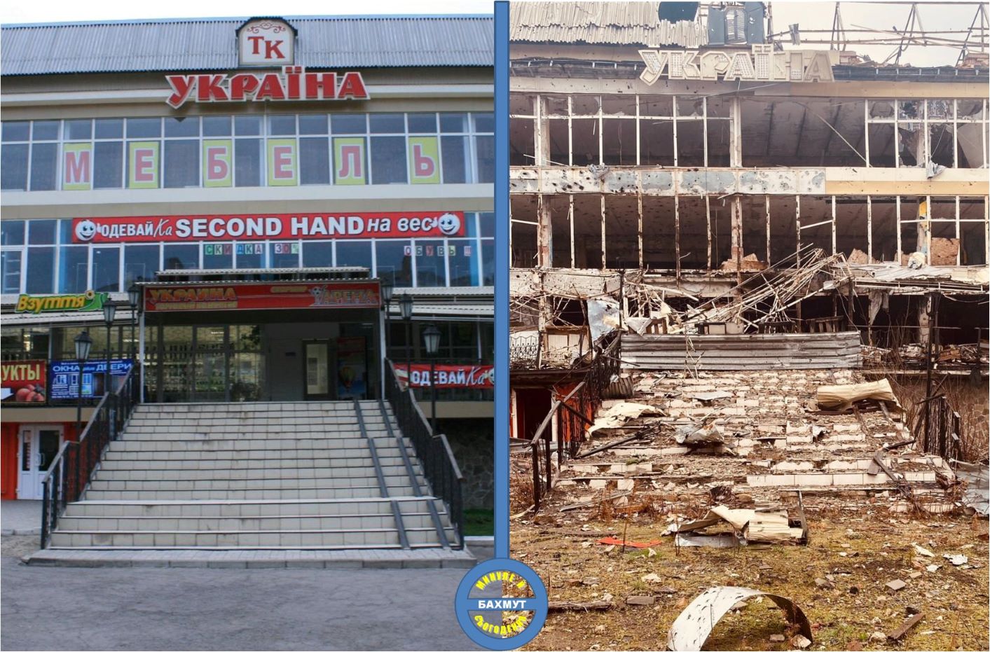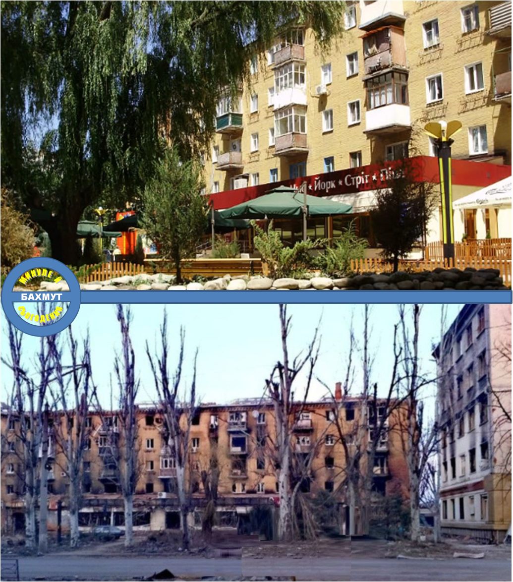 В сети сравнили фотографии мирного города Бахмут с тем, как он выглядит сейчас в результате российских обстрелов и оккупации. До российского вторжения в 2022 году город являлся центром соляной промышленности Украины и железнодорожным узлом. Во время боев за Бахмут город был разрушен на 80%.