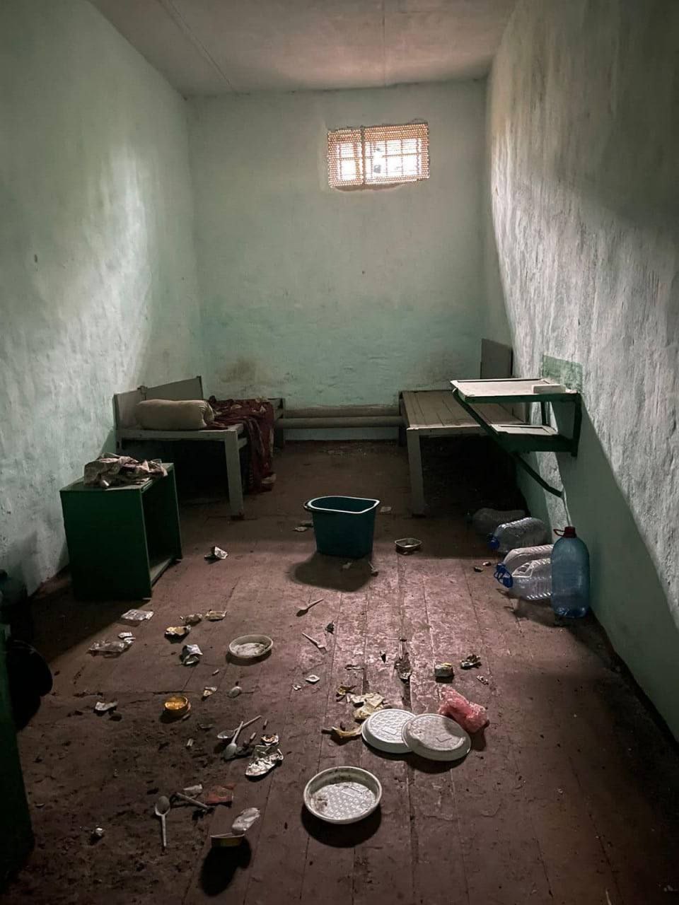 Сообщается, что пыточную российские захватчики обустроили в разрушенном здании, где раньше было расположено отделение Национальной полиции.