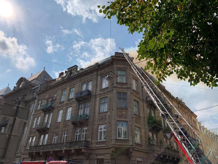 В среду, 15 сентября, на улице Князя Романа, 32 в центре Львова вспыхнул пожар на чердаке дома, который является памятником архитектуры местного значения. Пожар потушили, пострадавших нет.