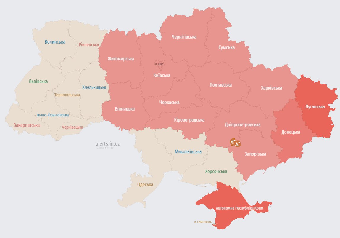 Воздушная тревога в большинстве регионов Украины была объявлена из-за угрозы баллистических ударов со стороны ВС РФ. После объявления тревоги в Запорожье раздались взрывы.