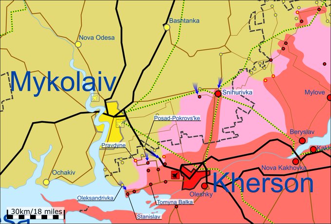 На Южнобужском направлении россияне несут потери. Пытаясь сдержать подразделения сил обороны Украины, обстреливает из артиллерии, минометов и реактивных систем залпового огня районы Муравьевки, Тополиного, Белой Криницы и Марьиного. Враг нанес авиационные ракетные удары по объектам гражданской инфраструктуры в районе Очакова и Куцуруба. Ведет воздушную разведку БПЛА. Армия РФ также усиливает фортификационное оборудование передовых позиций сооружением долговременных огневых точек.