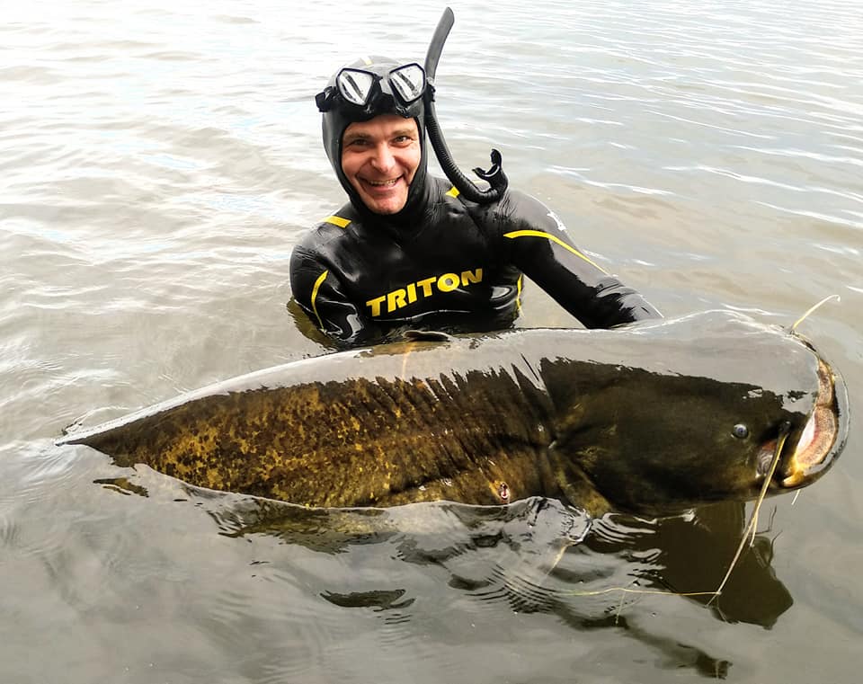 "У каждого подводного охотника свои цели и свой путь. Наверняка почти все, кто охотится в пресной воде, больше всего мечтают взять именно крупного сома. Такая же цель была и у меня", - отметил он.