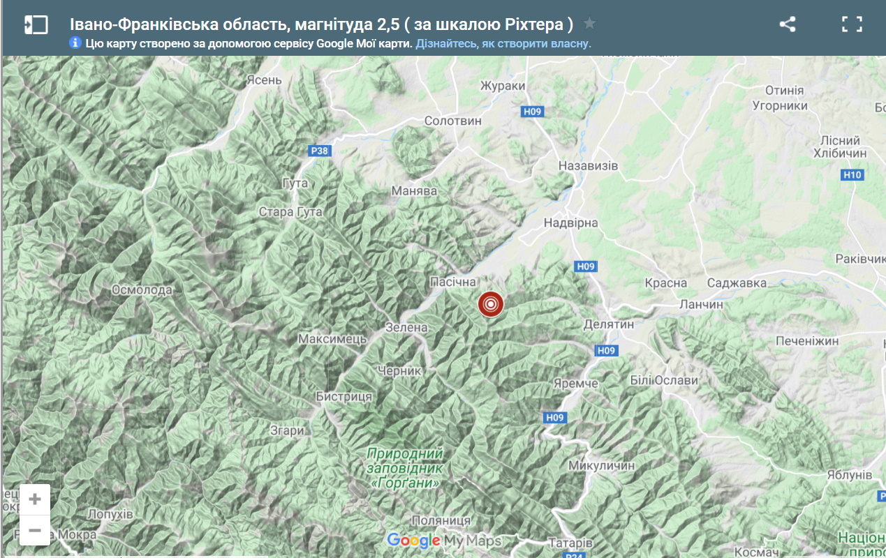 Толчки под землей были зафиксированы в Надворнянском районе Ивано-Франковской области, в 10 км. к юго-западу от города Надвирна на глубине 2 км.