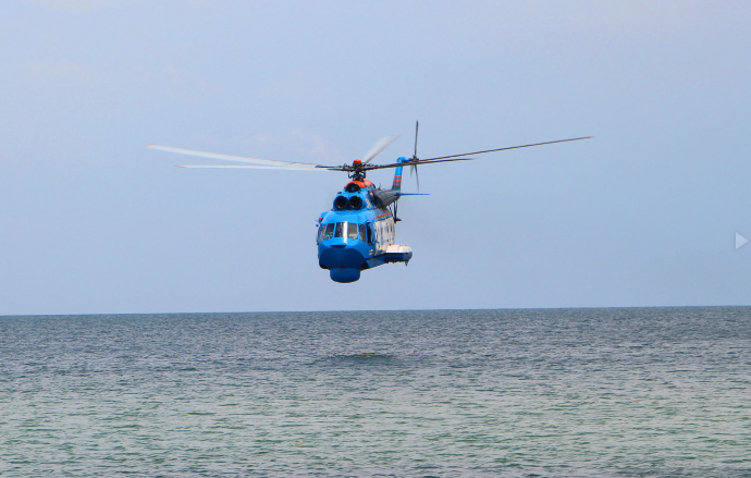 Военные отрабатывали навыки эвакуации поисково-спасательным вертолетом, со сбросом специальной лодки, с подъемом спасательной лебедкой и во взаимодействии с кораблем.