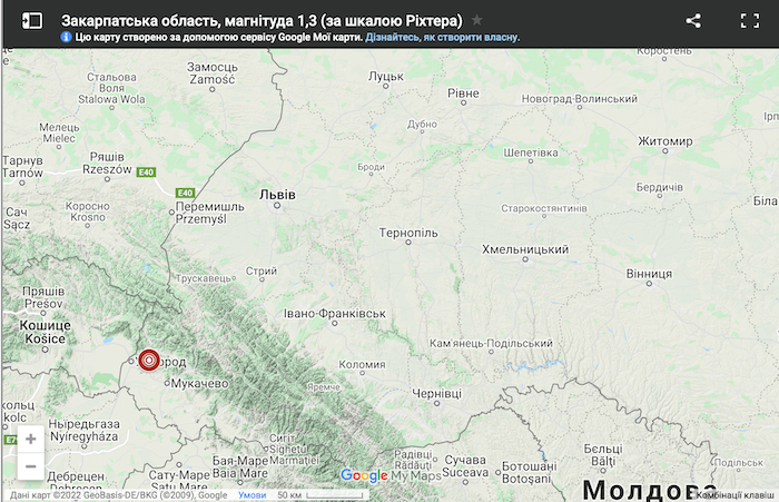 14 января, в пятницу под Ужгородом Закарпатской области зафиксировано землетрясение в 13:17.
