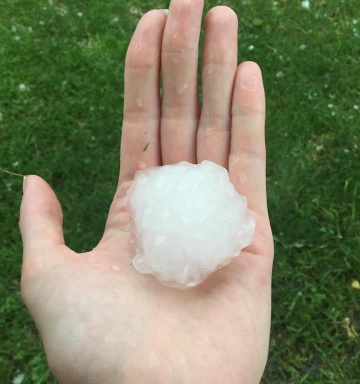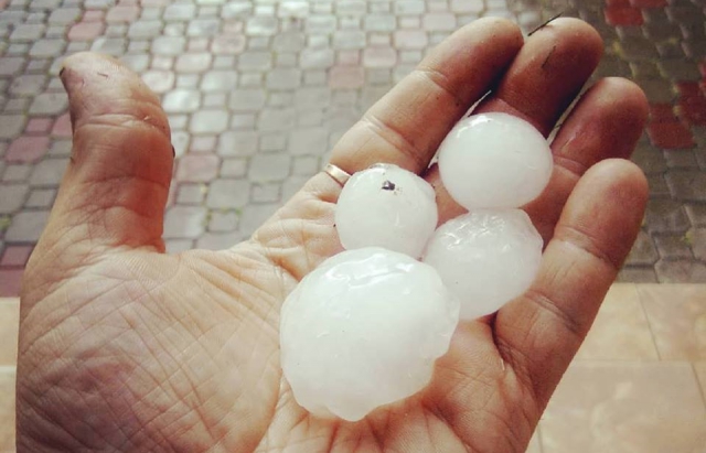 Пользователи соцсетей отмечают, что град достигал 4 сантиметров в диаметре.