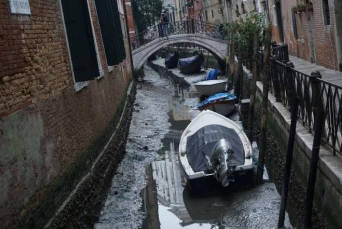 В венецианских малых каналах уровень воды опустился настолько, что по ним стало невозможно плавать.