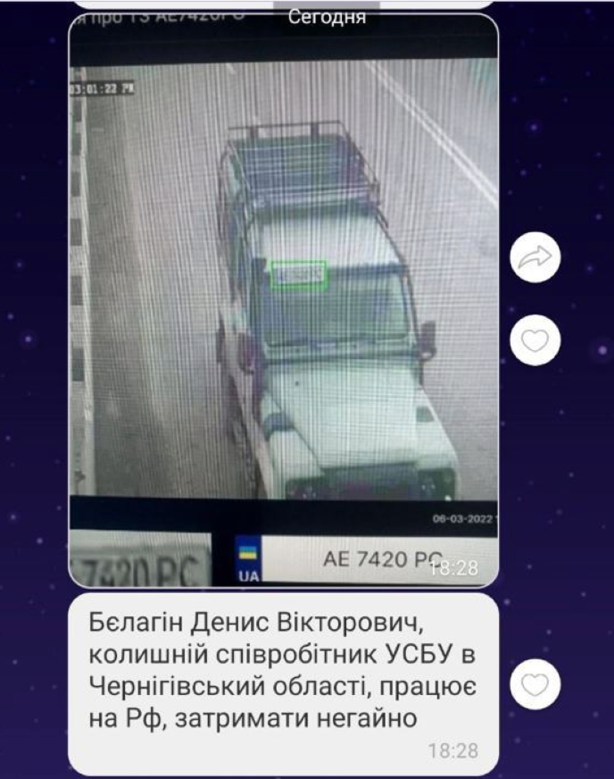 "Белагин Денис Викторович. Бывший сотрудник УСБУ в Черниговской области, работает на РФ. Задержать немедленно", - говорилось в ориентировке правоохранителей на предателя.