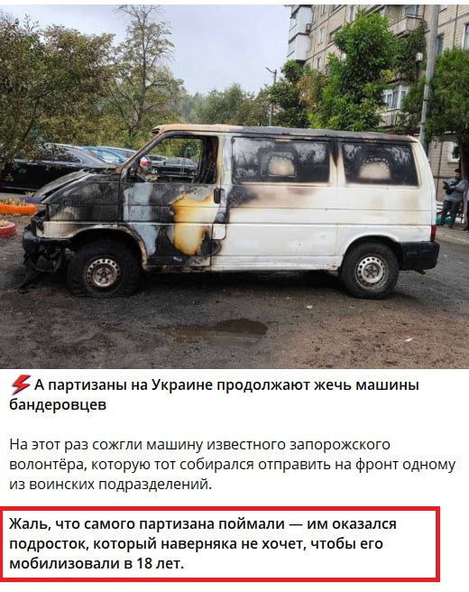 " Какие-то конченые малолетки, или конченые мамаши и папаши жгут авто нашим защитникам. Что делать? вон конченая малолетка! Короче нам срочно нужно второе авто или сто тысяч гривен", - написал волонтер.