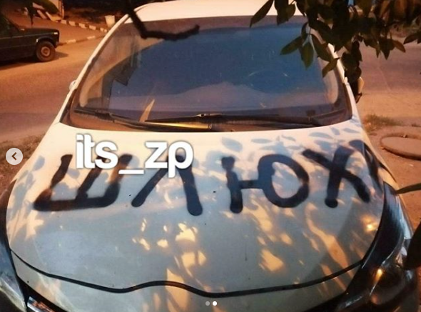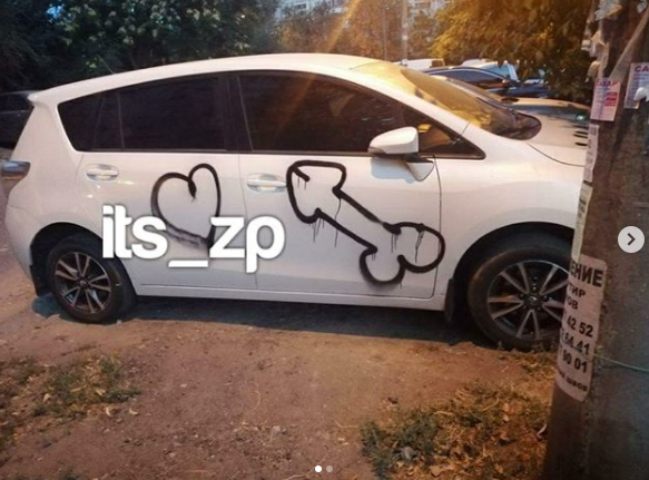 В Запорожье утром 25 сентября местные жители стали свидетелями пикантного перформанса - женщине неизвестный отомстил за измену, оставив на ее автомобиле непристойные рисунки.