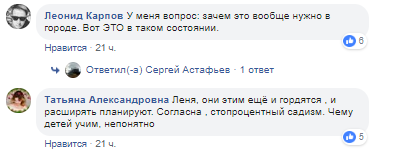 "Одного верблюда соломой подлатали, а из вторым не получилось??", "Печально!", "У меня вопрос: зачем это вообще нужно в городе. Вот ЭТО в таком состоянии", "Они этим еще и гордятся, и расширять планируют. Согласна, стопроцентный садизм. Чему детей учим, непонятно", - в таком духе пишут комментаторы.