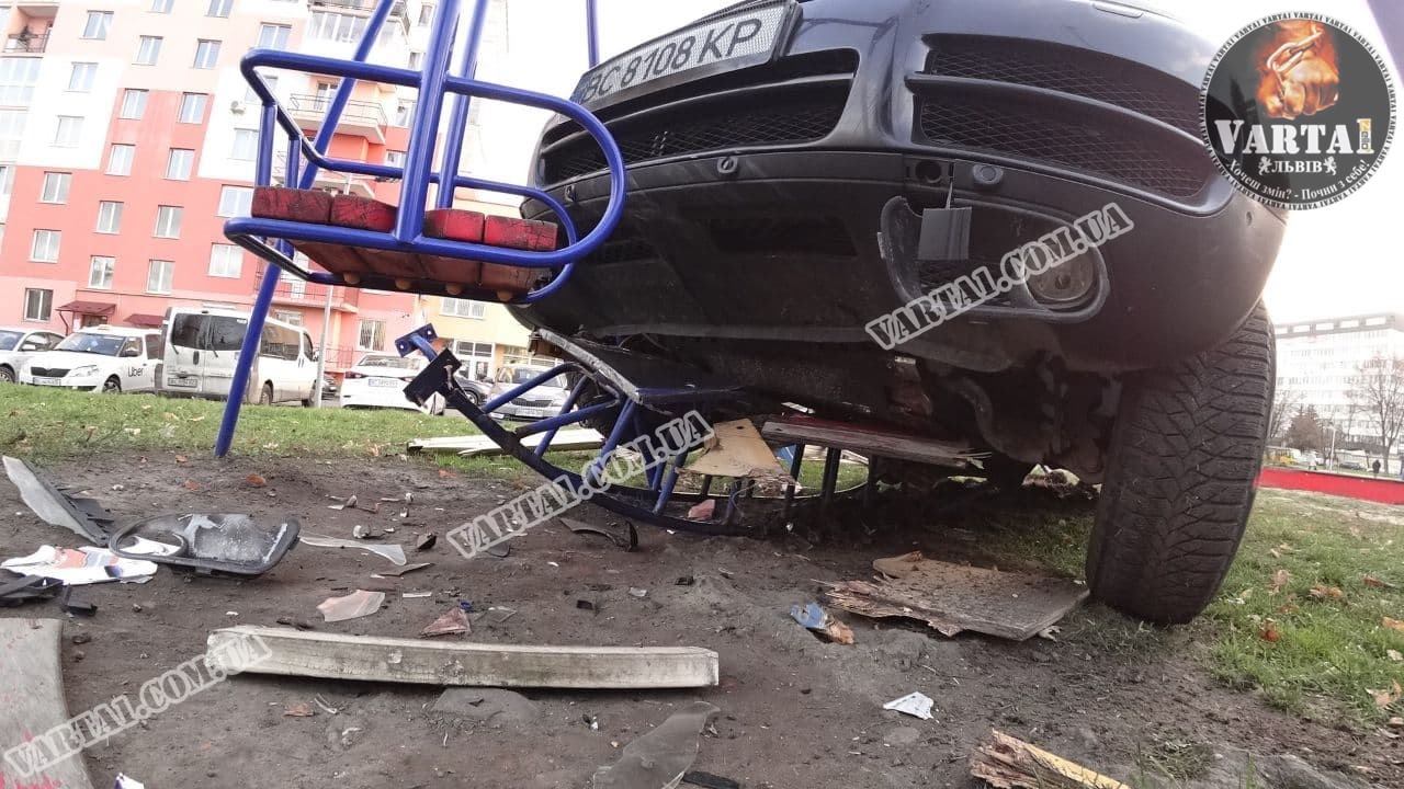 Во Львове 24 ноября на улице Торфяной 24-летний водитель не справился с управлением, повредил припаркованные машины и выехал на детскую площадку.