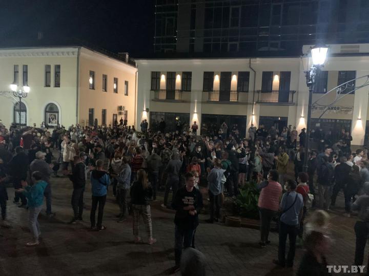 По состоянию на 20:30 по ситуации в Минске известно, что протестующие собирались на улице Пушкинской и у ТРЦ "Галерея" и выдвинулись в сторону Стелы под крики "Жыве Беларусь!". Возле стелы пошли в ход и водометы с окрашенной водой. Там же были слышны выстрелы.