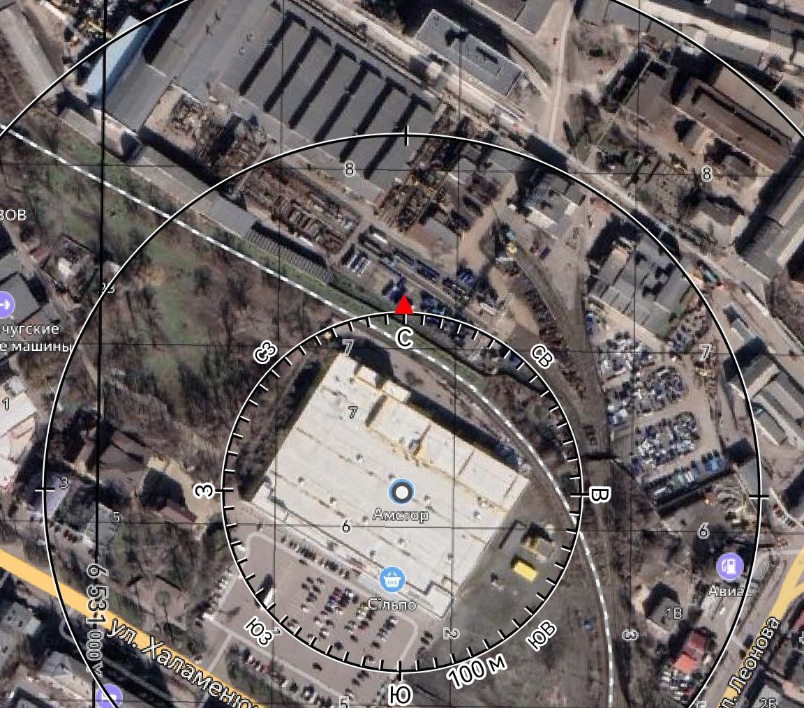 Вместе с тем, на фото со спутника и дрона видно за 200 метров на север от руин ТЦ неповрежденные цеха и здания завода "Кредмаш", на открытой площадке - неповрежденная продукция завода (дорожные машины), справа видно что-то, похожее на свалку, тоже без признаков пожара или детонаций.