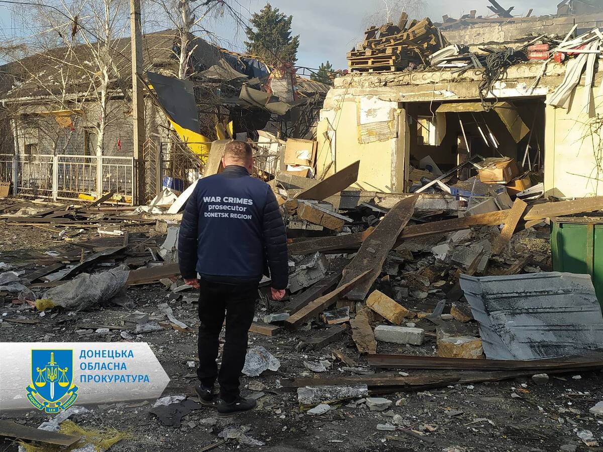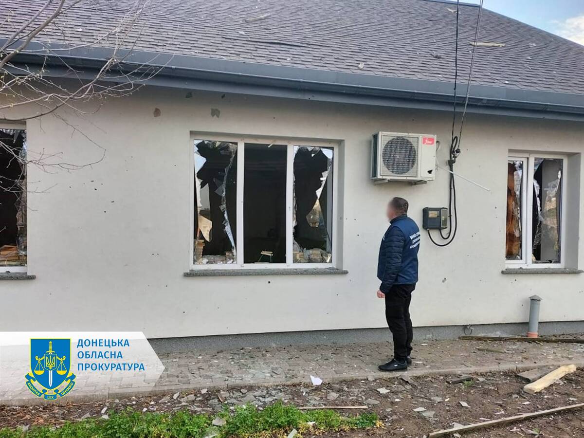 Донецкая областная прокуратура также показала несколько фото и видео с последствиями вражеской атаки.