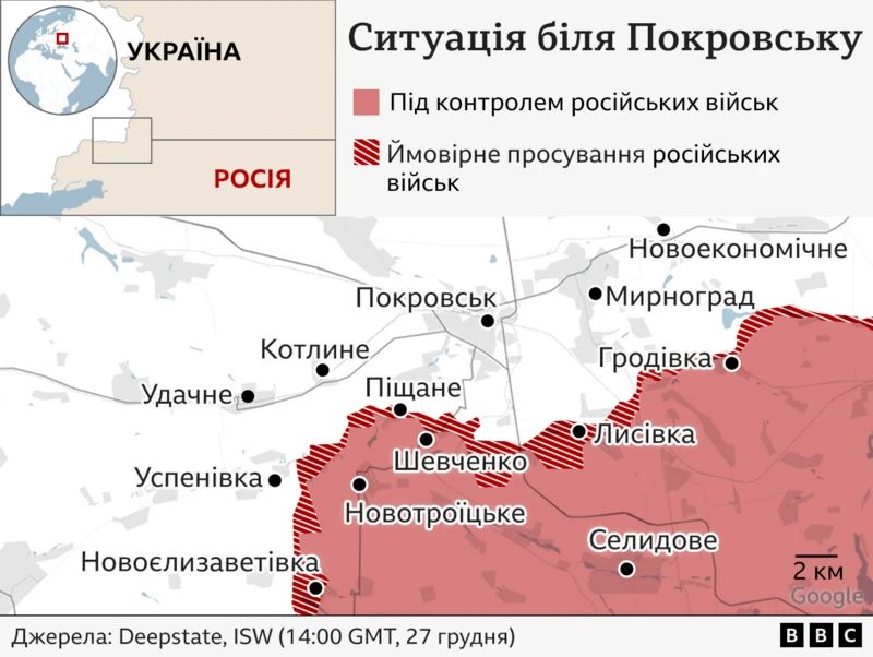 К югу от Покровска российские войска приблизились к административным границам Донецкой области – врагу осталось 8 км, чтобы дойти до Днепропетровской области . Украинские силы остановили их движение на подступах к городу, не допустив перерезания важных трасс. Россияне пытаются обойти Покровск с флангов, избегая прямого штурма.