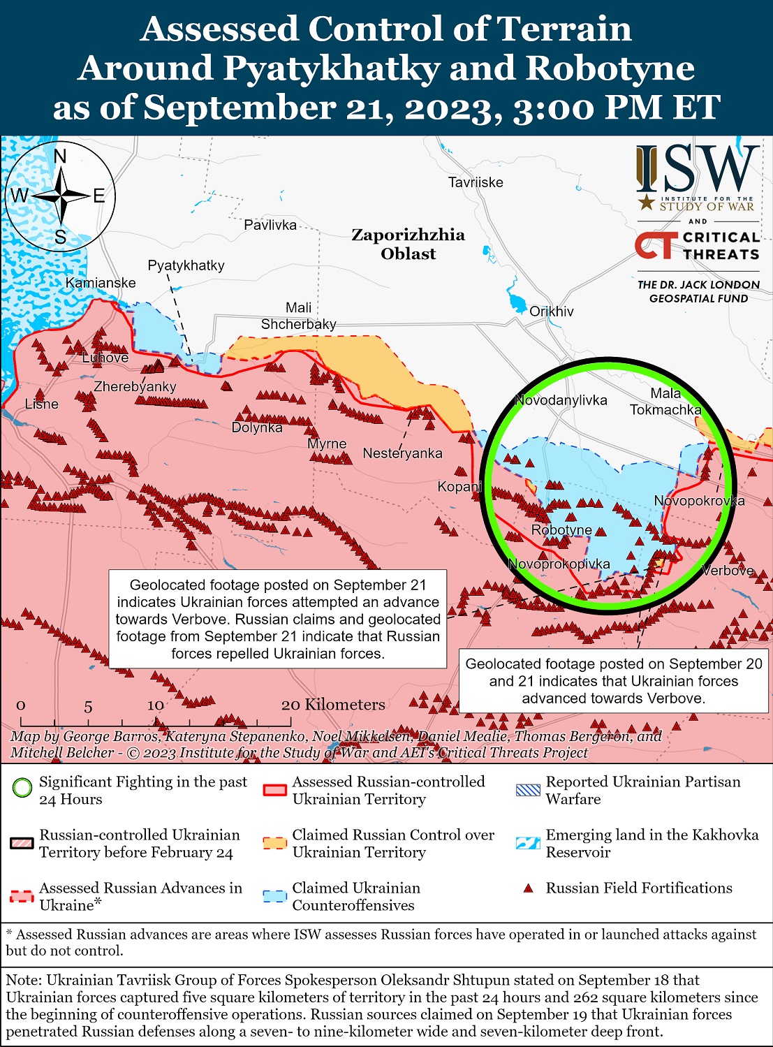 Россияне безуспешно атаковали вблизи Никольского (4 км юго-восточнее Угледара) на западе Донецкой области. Украинские войска провели наступательные действия на западе Запорожской области. Украинские силы продвинулись к юго-западу и западу от Вербового. Украинские силы продвинулись на один километр между Новопокровкой и Вербовым и контролируют трассу N08 (Роды-Воскресенка). Генштаб Украины сообщил, что российские войска безуспешно атаковали вблизи Работино.