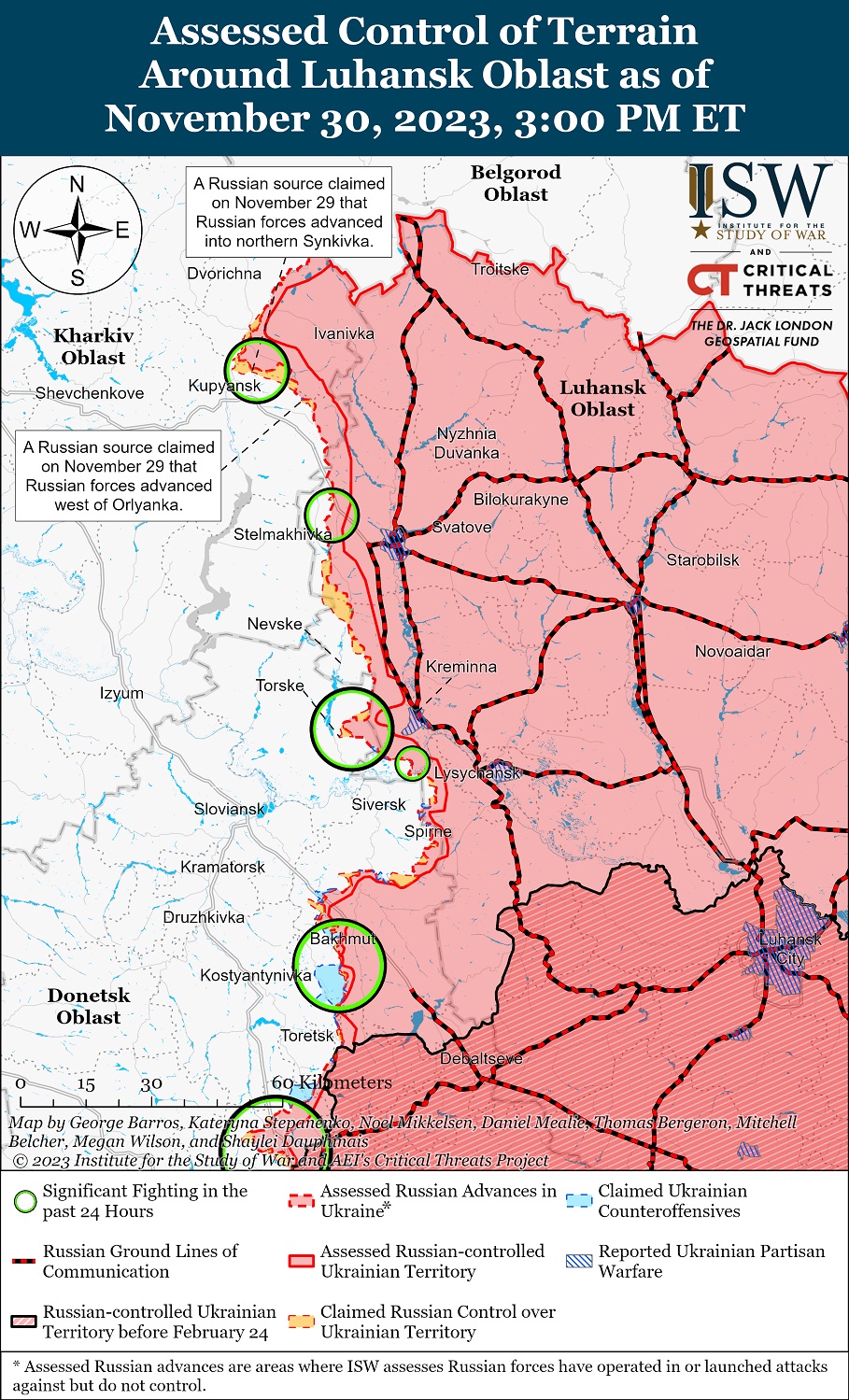 Российские войска продолжали наступательные действия вдоль линии Купянск-Сватово и не добились успеха. Также войска РФ временно активизировали локализованные наступательные операции вблизи Кременной, и также не добились никаких подтвержденных успехов.