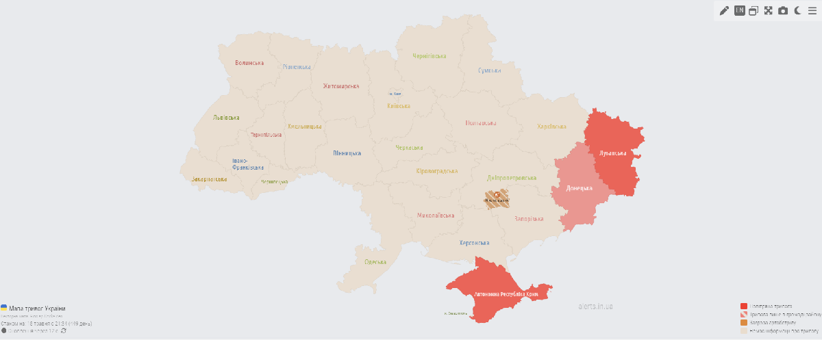 Обновлено: по состоянию на 21.30 воздушная тревога была отменена, к счастью, атак вражескими ракетами не зафиксировано.