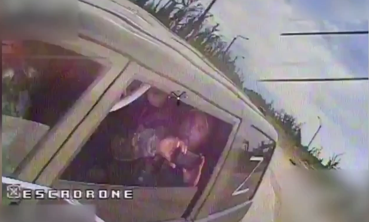 Россиянин, сидящий со стороны пассажира, держит в руках телефон, видимо снимая прекрасные украинские пейзажи. Впрочем, вероятно, это была его последняя съемка. Когда дрон долетел до машины, камера зафиксировала полное ужаса лицо оккупанта, после чего видео обрывается.