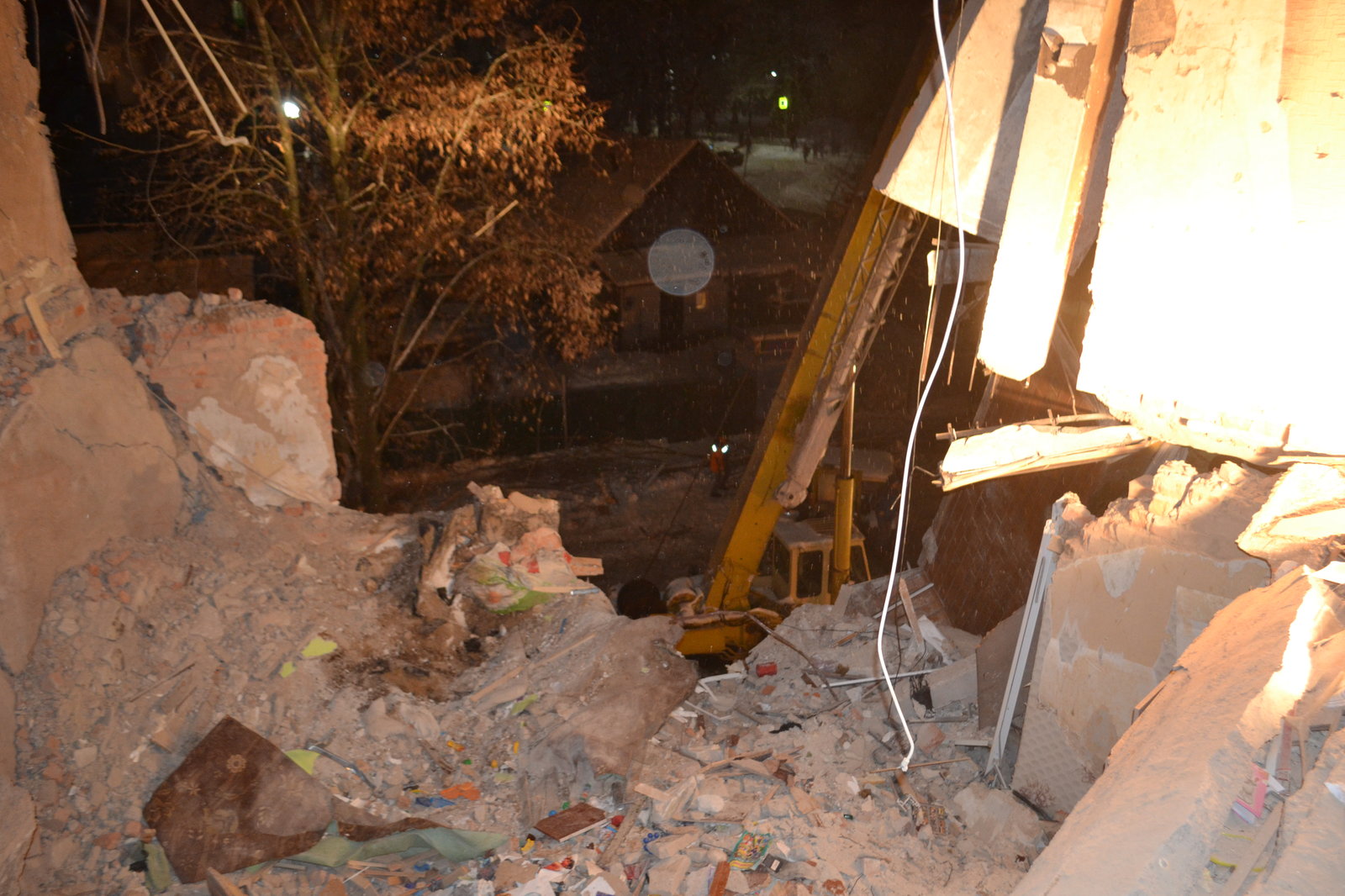 Предварительно, на четвертом этаже пятиэтажного десятиподъездного жилого дома (70 квартир, зарегистрировано 166 жителей) произошел взрыв, вероятно бытового газа.