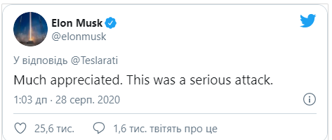 На материал издания отреагировал основатель Tesla Маск. Он написал, что благодарен за оперативное реагирование, ведь планировалась "действительно серьезная атака".