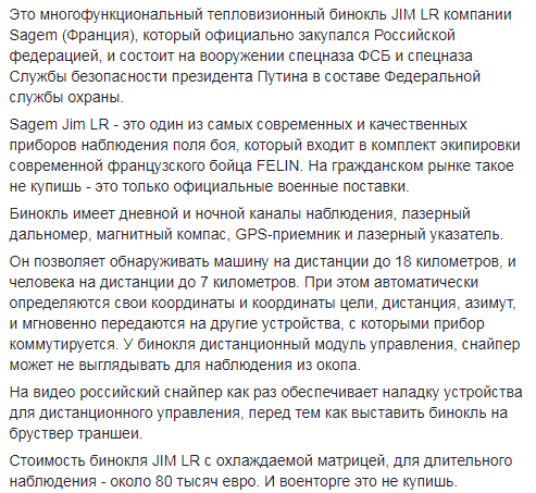 Украинские власти замалчивают использование российским спецназом на Донбассе французских биноклей для убийства воинов Украины.