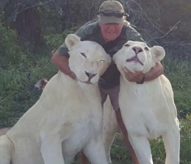 68-летний эколог Вест Мэтьюзон вырастил и жил с двумя редкими белыми львами. К сожалению, во время одной из игр, животные разорвали мужчину.
