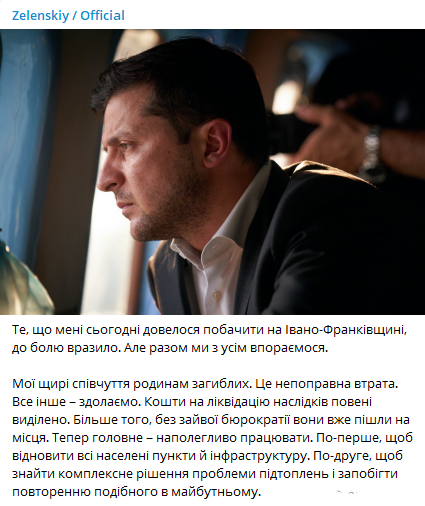 Также Зеленский прокомментировал ситуацию на Прикарпатье в соцсетях.