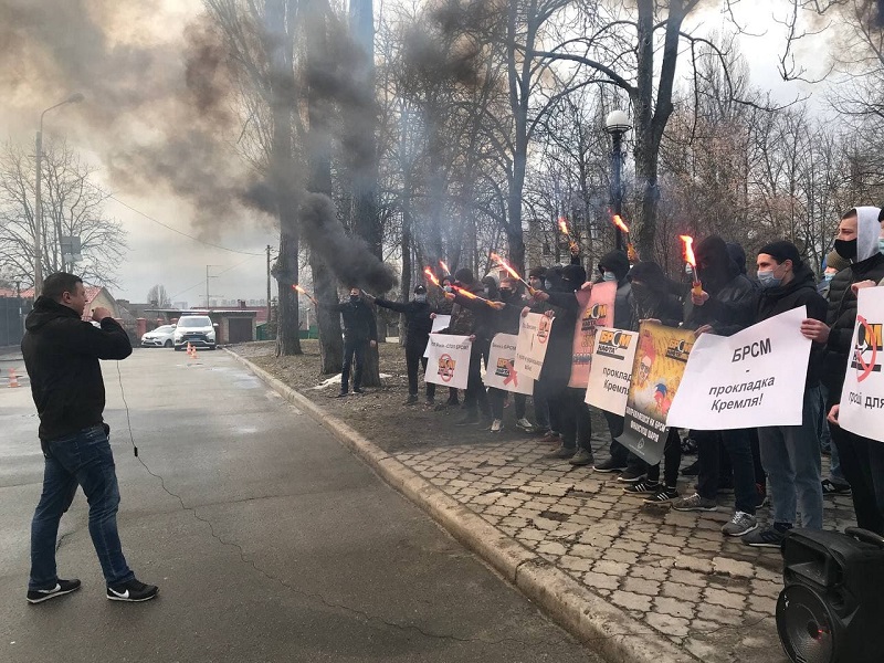 Активисты движения "Национальное Сопротивление" провели митинг под офисом "БРСМ-Нафта". Они призвали СНБО наложить санкции на сеть БРСМ и ее владельцев, а СБУ провести тщательное расследование всех фактов о возможном "финансировании пророссийских сил этой компанией".