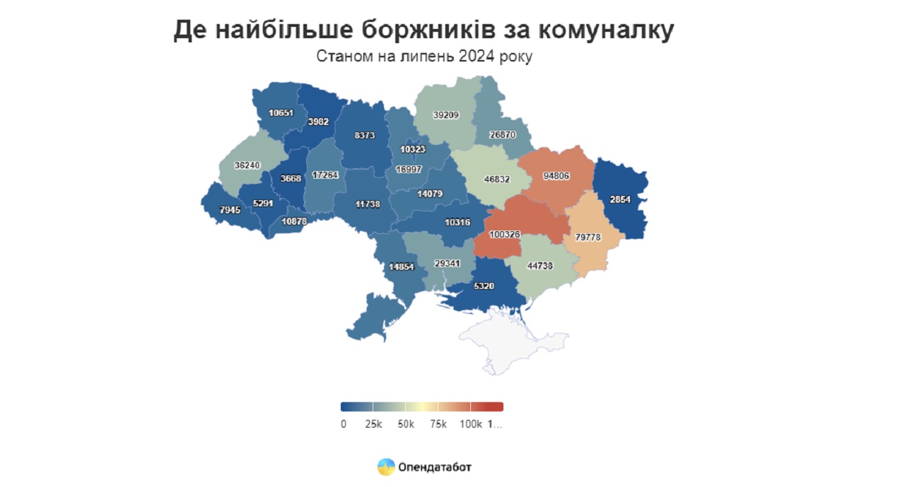 По состоянию на июль 2024 года в Украине наибольшее количество должников за жилищно-коммунальные услуги насчитывается в Днепропетровской области.